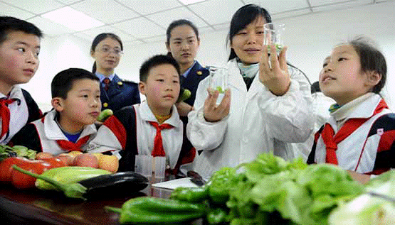 安徽省合肥市包河区屯溪小学阳光校区的学生走进包河区食物平安检测室,